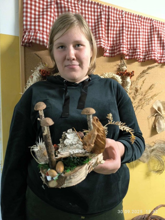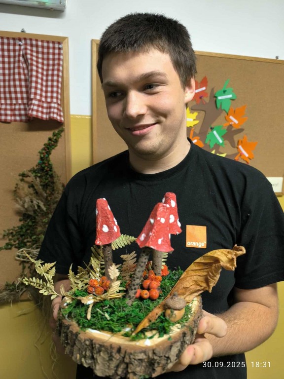 Podczas zajęć plastycznych wychowankowie stworzyli piękne prace z motywem grzybów wykorzystując naturalne materiały i dużo wyobraźni!