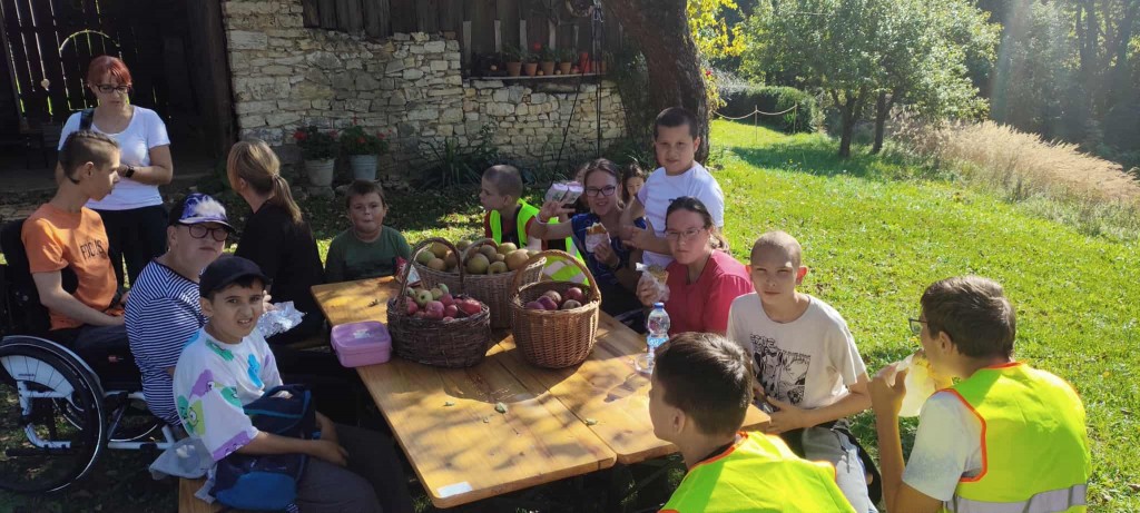 Trasa o długości 3 km w jedną stronę i 2,5 km w drugą prowadziła przez malownicze tereny, a wspólne pokonywanie tego dystansu w świetnych nastrojach wzmacniało więzi uczestników, sprzyjając wzajemnej pomocy i wsparciu. W Czułej Stodole uczestnicy mieli okazję delektować się pieczonymi jabłkami doprawionymi cynamonem, podanymi z maślanką i migdałami. Był to zdrowy i smaczny poczęstunek, który miał na celu obniżenie wyrzutu cukru po spożyciu słodkich owoców – doskonała alternatywa dla kalorycznych i niezdrowych przekąsek, takich jak grillowane kiełbaski. Tego rodzaju posiłek był zgodny z zasadami odpowiedniej diety, która w przypadku osób z zespołem Pradera-Williego ma kluczowe znaczenie. Choroba ta, nazywana „chorobą wiecznego głodu”, objawia się niepohamowanym apetytem, co stawia przed chorymi wyzwanie w zakresie zarządzania dietą. Całość wydarzenia miała na celu szerzenie świadomości na temat tej rzadkiej choroby, ale także przypomnienie, jak ważne jest umiejętne wprowadzanie zdrowych nawyków żywieniowych i aktywności fizycznej. Z pewnością była to inspirująca, edukacyjna i pełna radości wyprawa, która na długo pozostanie w pamięci uczestników.