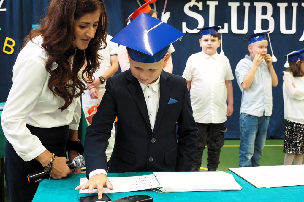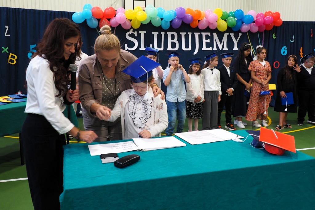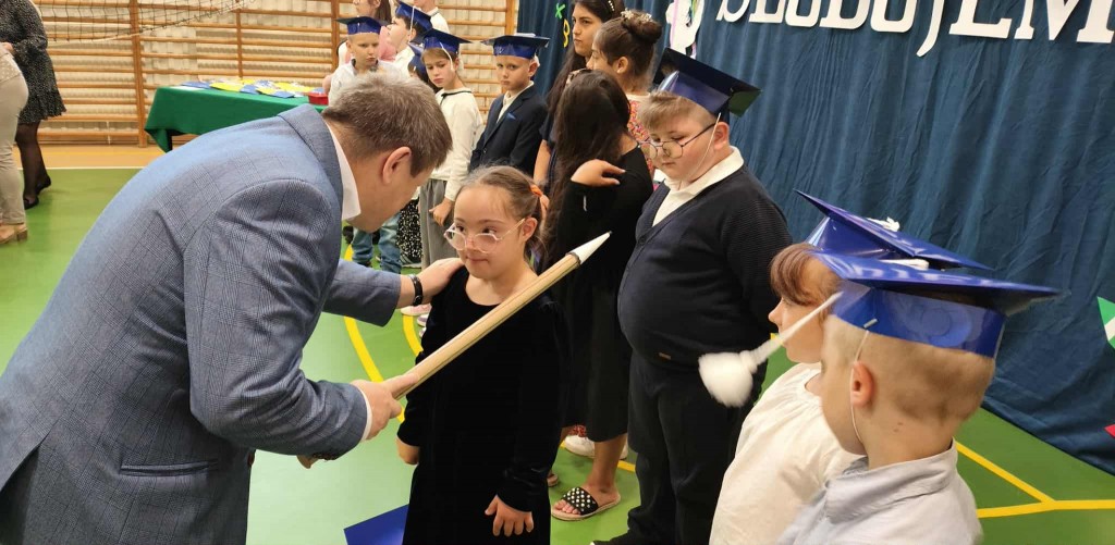 Słowami piosenki M. Szcześniaka rozpoczęliśmy dzisiaj przyjęcie nowych uczniów do społeczności szkolnej. Było ślubowanie, było pasowanie, przemówienie pani dyrektor, a na zakończenie zatańczyliśmy do naszego szkolnego szkolnego szlagieru „To jest nasz dzień”.