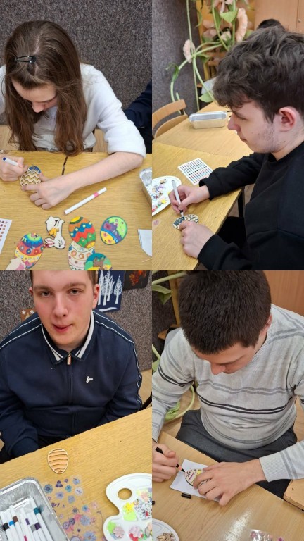Uczniowie SPdP podczas warsztatów tworzyli ozdoby wielkanocne. Powstały prawdziwe małe dzieła sztuki, każdy uczestnik mógł wykazać się swoją kreatywnością i wyobraźnią.